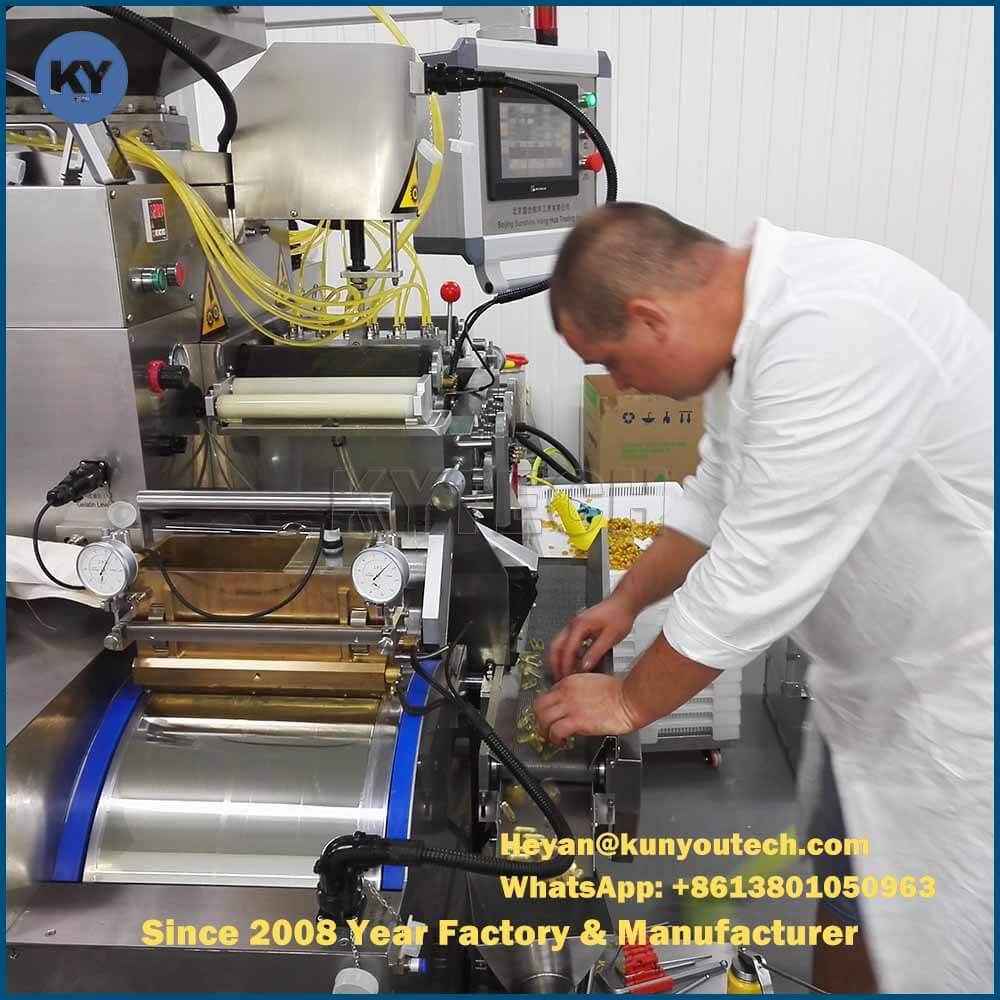 S610PB Paintball/Softgel Encapsulation Machine· i componenti sono principalmente provenienti dalla Germania.riducendo l'usura meccanica e prolungando il tempo senza erroriIl sistema di controllo dispone di una funzione di diagnosi dei guasti.Può realizzare la diagnosi a distanza dopo l'aggiornamentoLa nuova gabbia a rotolo amorfo di asciugatura di tipo 8 è caratterizzata da regolazione della velocità a frequenza variabile e da una struttura più ragionevole. La gabbia può essere smontata senza spostare l'asciugatrice. È facile da pulire.Ci sono dischi di ricezione di materiale sotto la gabbia di rotolamento, rendendo S610 più conforme ai requisiti delle GMP.