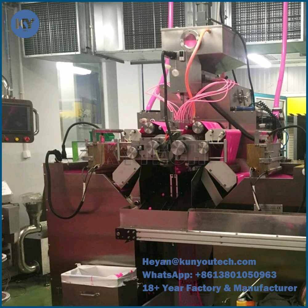 Rispetto alla macchina softgel, la produzione di paintball richiede una migliore precisione della macchina, il sistema di trasmissione dell'azionamento è anche migliorato.La scatola di scarico e di diffusione adotta l'interruttore di livelloInoltre, il cuneo di iniezione, la scatola di diffusione e la tramoggia adottano la progettazione di un preciso controllo della temperatura PID.Il sistema di micro lubrificazione riduce notevolmente il consumo di olio di paraffina.