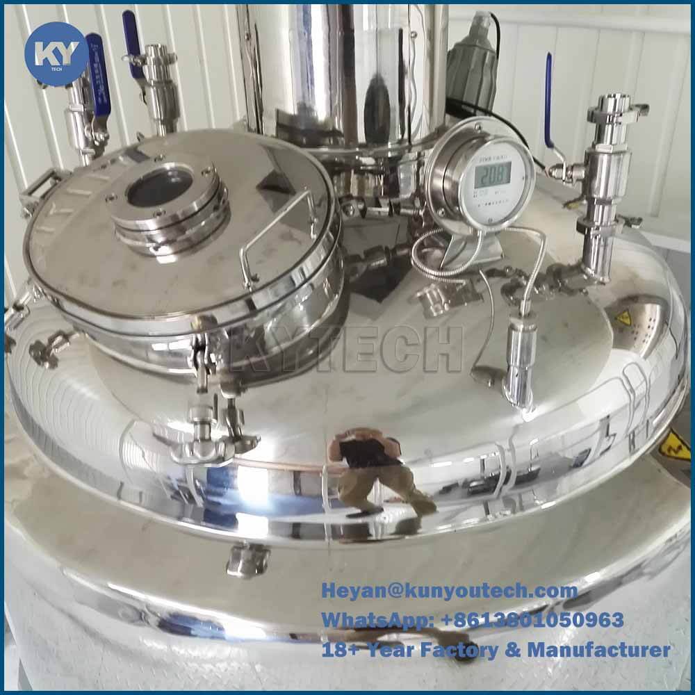 3. Il processo di miscelazione/agitazione viene eseguito tramite un accoppiamento ad anello di collegamento ed è composto da una pluralità di agitatori divisi con trasmissione stabile e un migliore effetto di omogeneizzazione. L'intero corpo del serbatoio è realizzato in acciaio inossidabile.