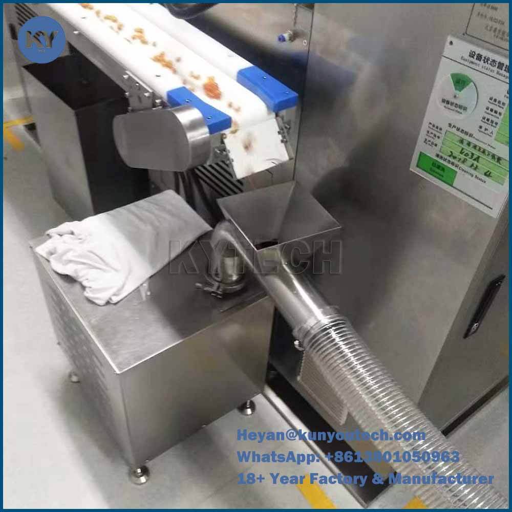 Le parti principali della macchina per capsule morbide a rulli S610 utilizzano cuscinetti di precisione tedeschi. L'intera parte meccanica della macchina adotta una lubrificazione singola regolabile indipendente, riducendo l'usura meccanica e prolungando il tempo senza errori. La pompa del farmaco può funzionare insieme al rullo della matrice automaticamente e in modo sincrono, è molto comodo regolare il tempo di spruzzatura. S610 adotta un nuovo meccanismo a camme, che ha alleviato il processo di sincronizzazione manuale della scheda di inversione. Ci sono due modi per utilizzare il cantilever per operare, un touch screen di grandi dimensioni e un pulsante a interruttore tra cui scegliere. Il sistema di controllo ha la funzione di diagnosi dei guasti. Può realizzare la diagnosi remota dopo l'aggiornamento. La nuova gabbia del rullo di essiccazione amorfa di tipo 8 è caratterizzata dalla regolazione della velocità a frequenza variabile e da una struttura più ragionevole. La gabbia può essere smontata senza spostare l'essiccatore. È facile da pulire. Ci sono dischi di ricezione del materiale sotto la gabbia del rullo, rendendo S610 più in linea con i requisiti GMP. La linea di produzione automatica di capsule morbide a rulli S610 viene utilizzata per premere e iniettare il liquido oleoso, il liquido di sospensione o la pasta quantitativamente e incapsularli nella gelatina, producendo quindi diverse dimensioni e forme diverse di softgel di tenuta. La linea di produzione è composta principalmente da macchina principale, essiccatore a tumbler, sistema di riempimento del materiale e barili di plastica pneumatici, ecc.